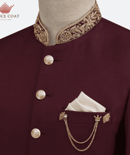 Maroon Fabric Embellished Pakistani Designer Prince Coat – Menswear