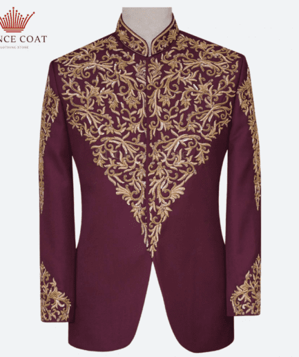 Light Maroon Embroidered Pakistani Designer Prince Coat – Menswear
